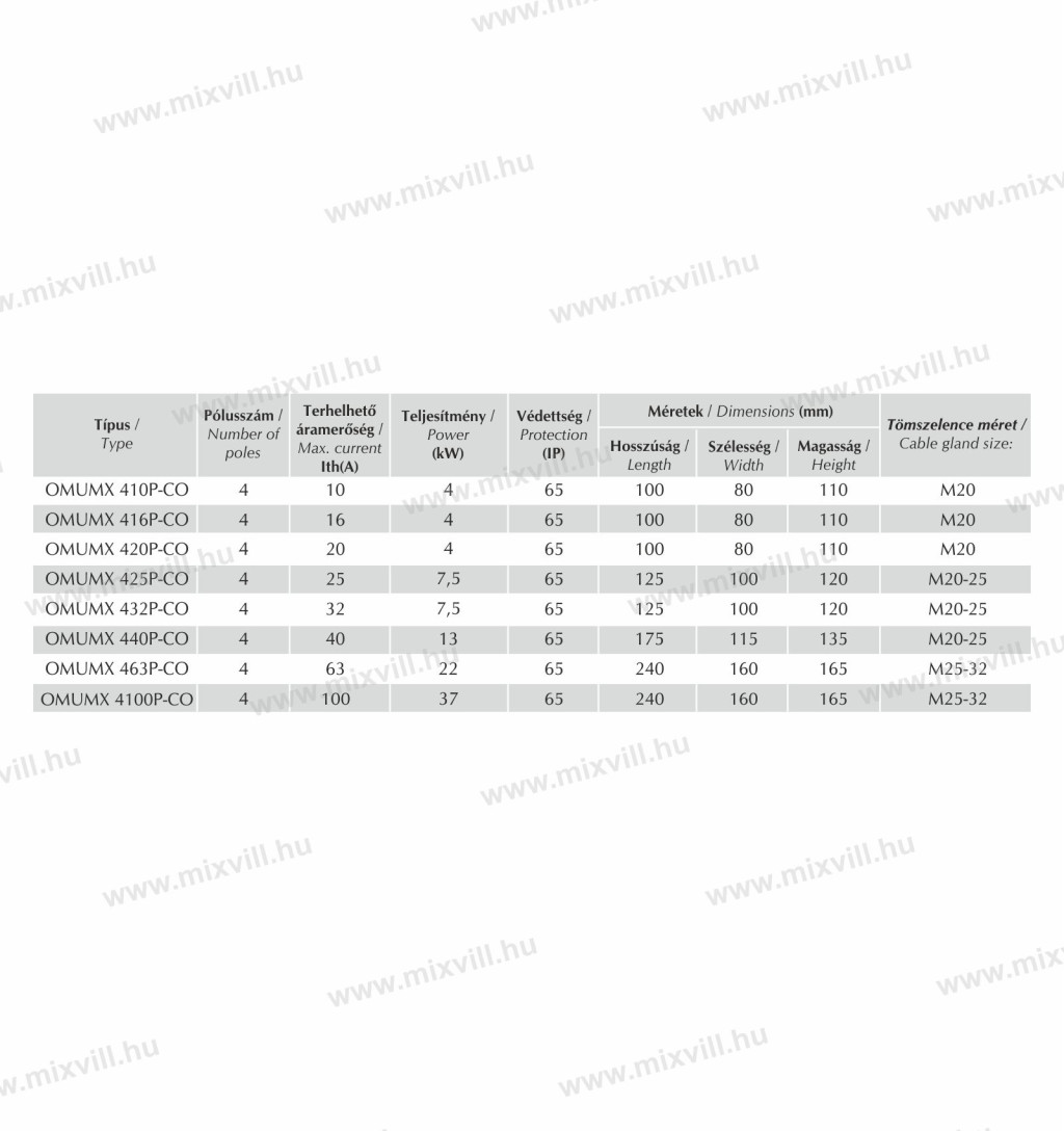 OMU system MX-4100P-CO 4 pólusú tokozott ipari kézi átkapcsoló 1-0-2 4x100A IP65