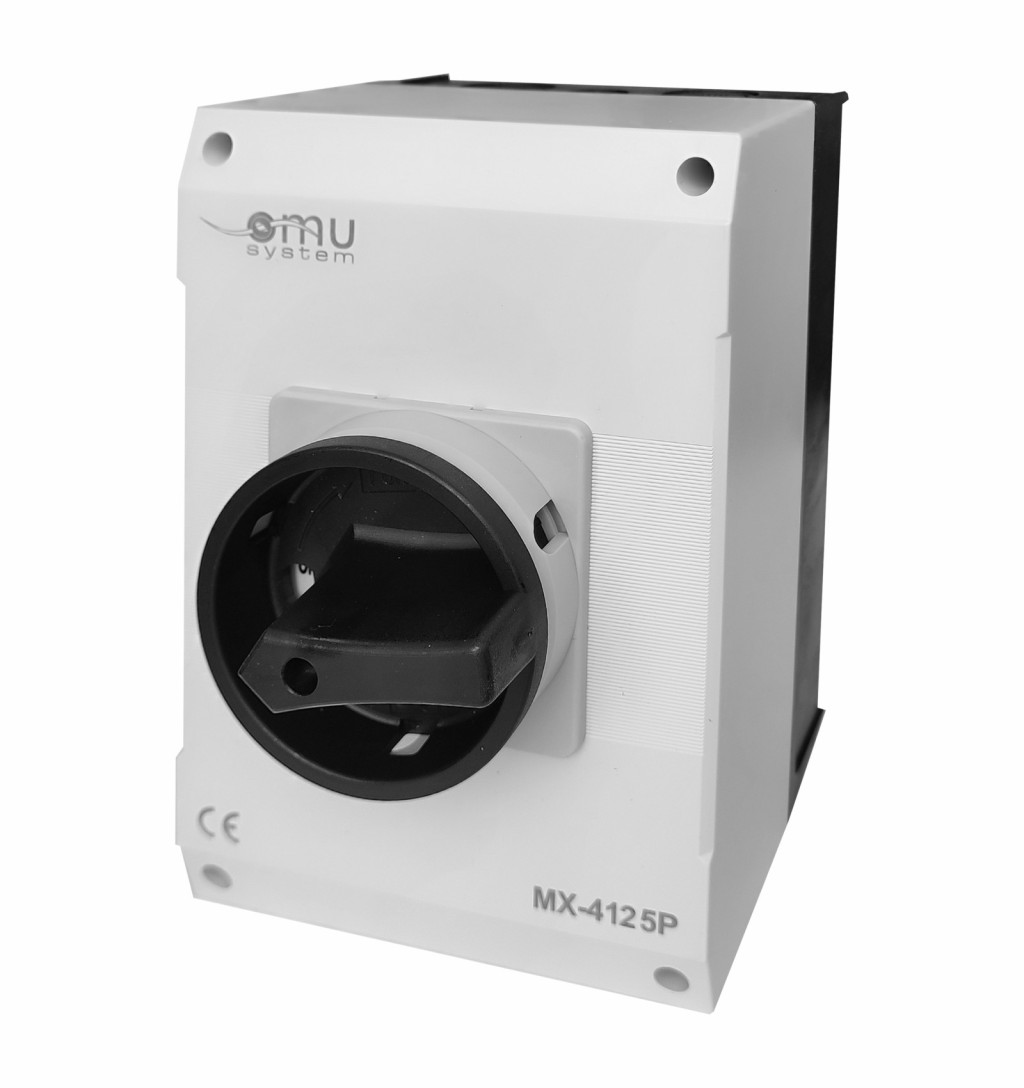 OMU system MX-4125P 4 pólusú 125A tokozott ipari ki-be kapcsoló 4x125A IP65 forgócsapos lakatolható