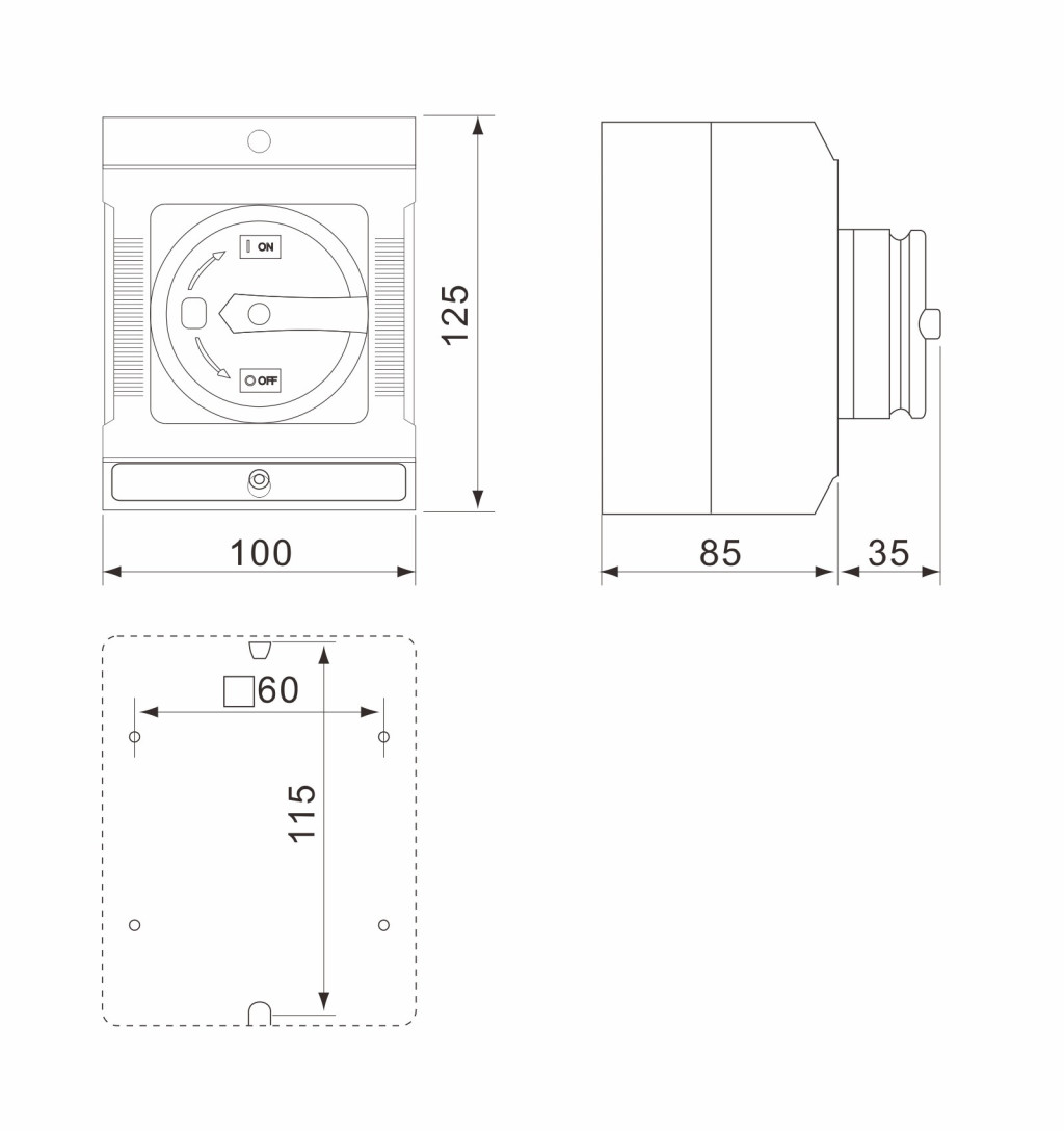 OMU system MX-440P 4 pólusú 40A tokozott IP65 ipari ki-be kapcsoló 4x40A forgócsapos lakatolható