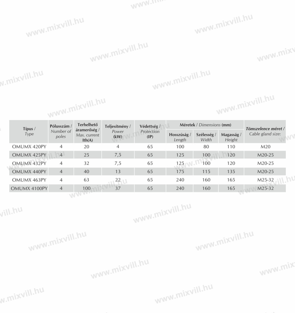 OMU system MX-440PY 4 pólusú 40A tokozott ipari ki-be kapcsoló 4x40A IP65 lakatolható