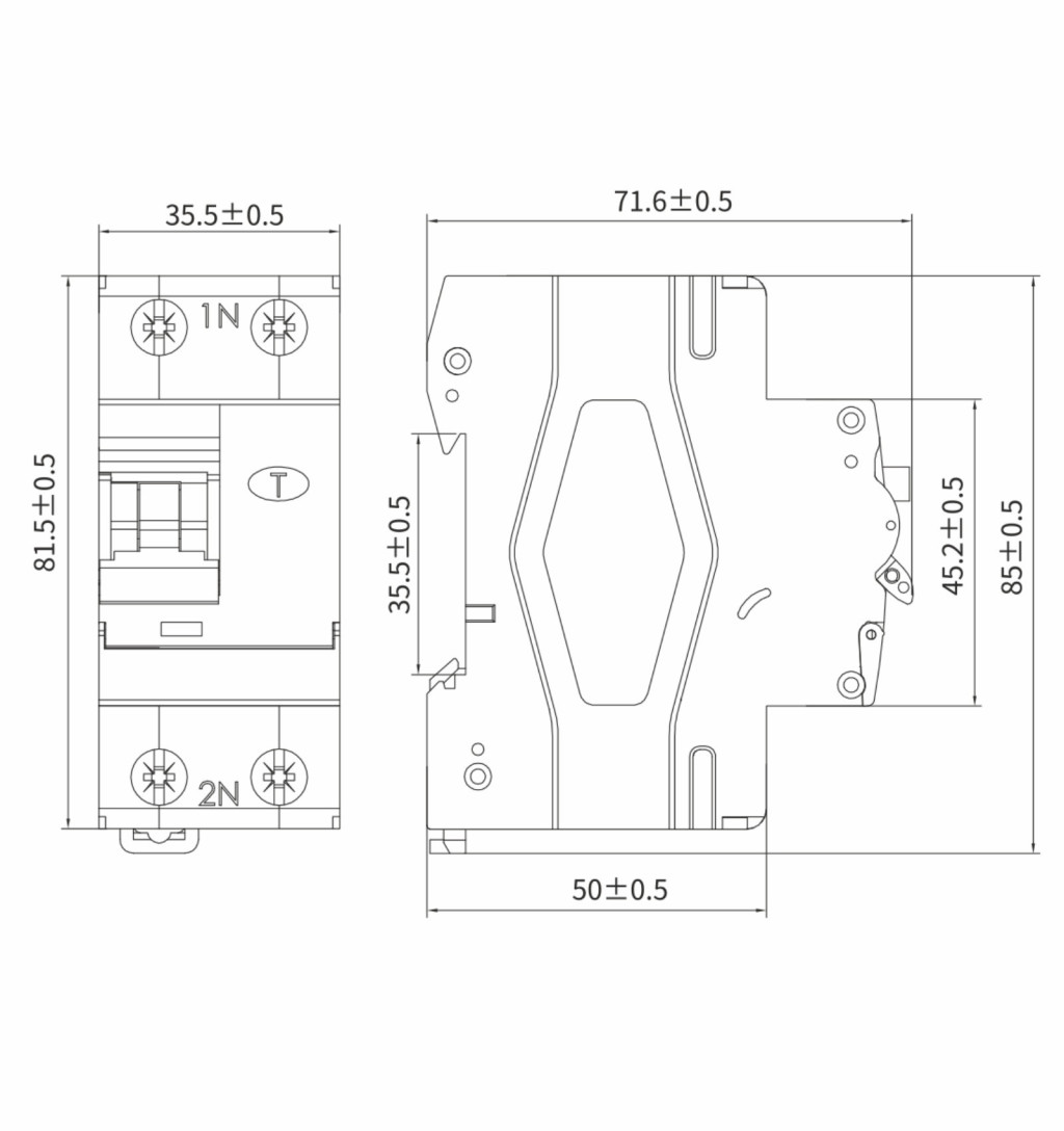 - Modulszélesség: 2 modul (35,6mm ± 0,1mm)
