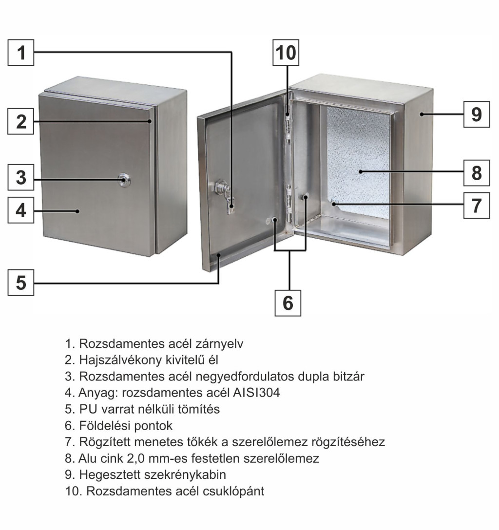 Az alábbi főbb jellemzői biztosítják, hogy a szekrény ellenálljon különféle környezeti hatásoknak és védje a benne lévő berendezéseket: