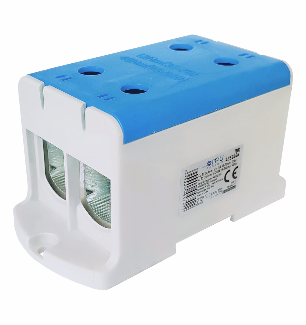 Omu system TUK435240N 4x35-240mm2 (CU:425A, AL:380A) 1 pólus, kék csatlakozókapocs, univerzális sorkapocs