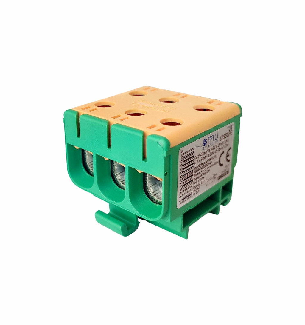 Omu system TUK62550PE 6x2,5-50mm2 (CU:245A, AL:220A) 1 pólus CLASS A zöld-sárga csatlakozókapocs sor