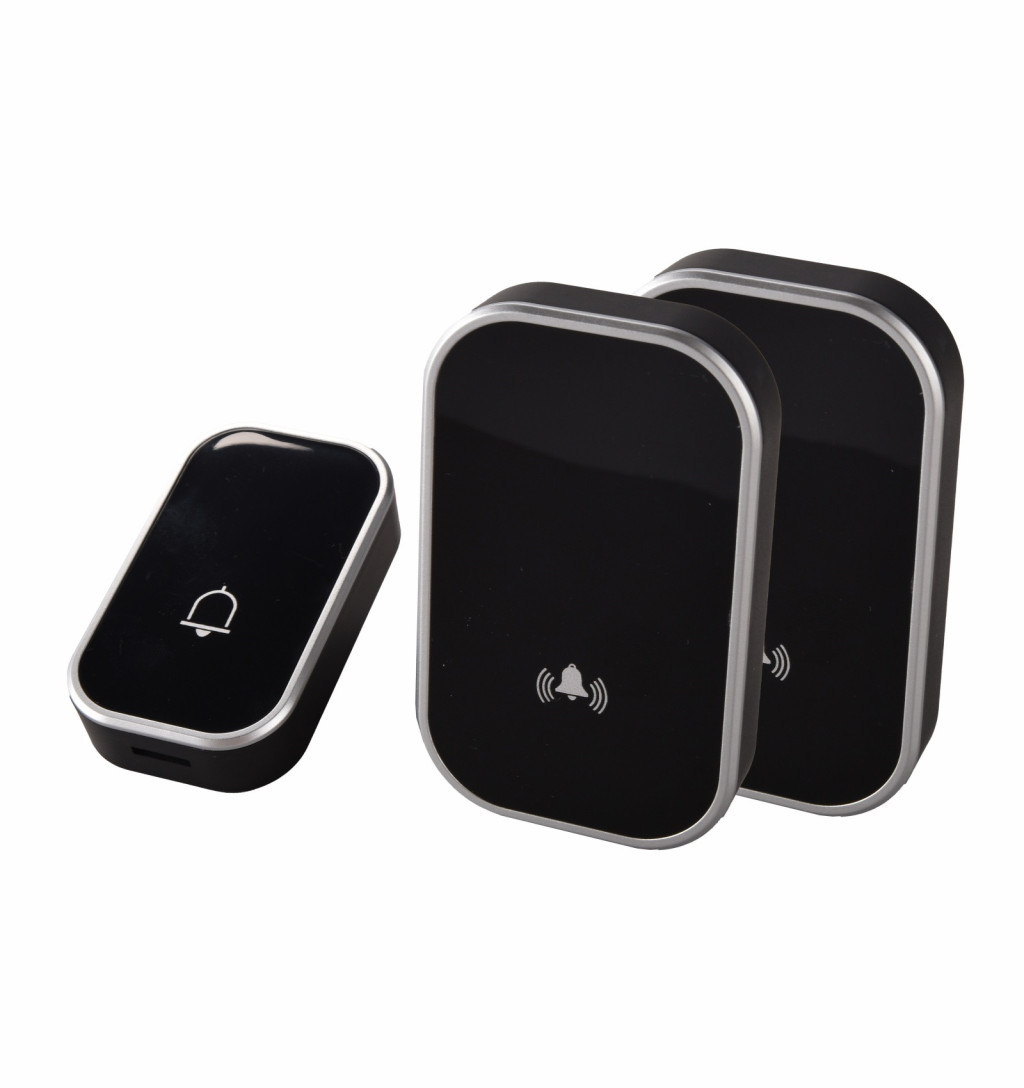 OMU System WB12V-1A2VB vezeték nélküli ajtócsengő 1 adó és 2 vevő egység fekete színben Egyszerű telepítés, stílusos megjelenés és megbízható működés!