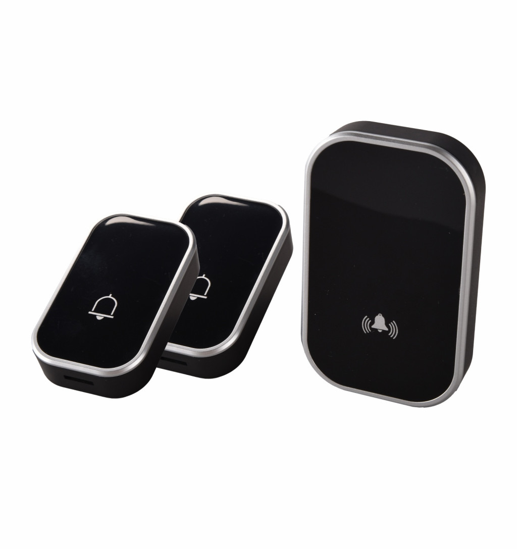 OMU System WB12V-2A1VB vezeték nélküli ajtócsengő 2 adó és 1 vevő egység fekete színben Egyszerű telepítés, stílusos megjelenés és megbízható működés!