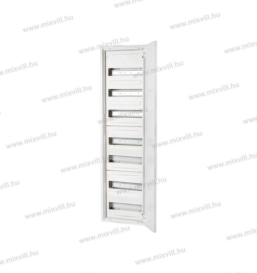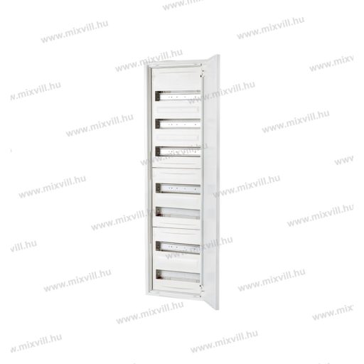 A sorolható elosztószekrény nagy vezetékezési hellyel rendelkezik a DIN sín mögött. Az ajtó nagy szögben nyitható és szerszám nélkül jobbra, illetve balra is szerelhető.