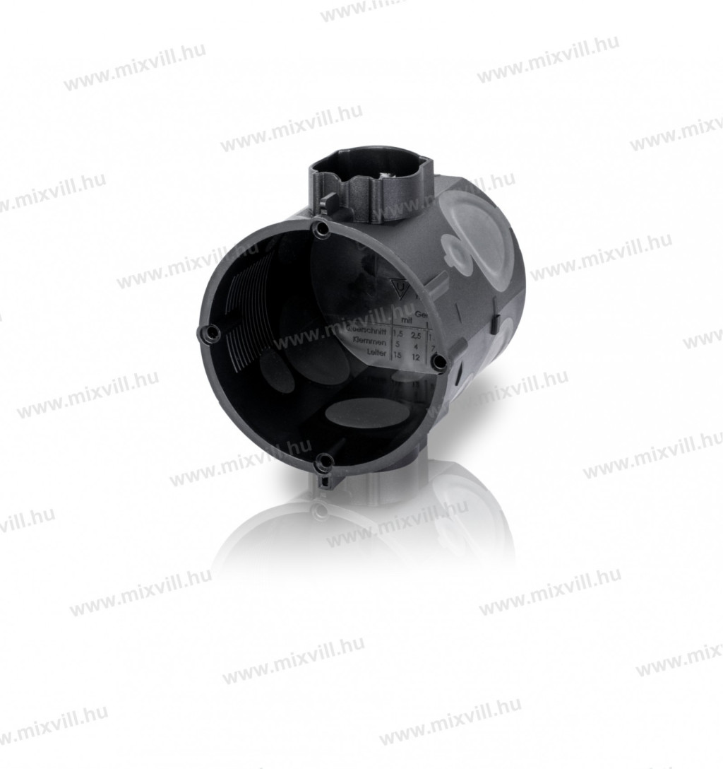 A téglafalba építhető 60 mm átmérőjű és 65 mm mély, halogénmentes sorolódoboz, gumimembrános kábel, illetve védőcsőbevezetésekkel rendelkezik. Gyors, szerszámmentes szerelést tesz lehetővé. Sorolható, a két köröm összecsúszó köröm mégstabilabb sorolást biztosít.