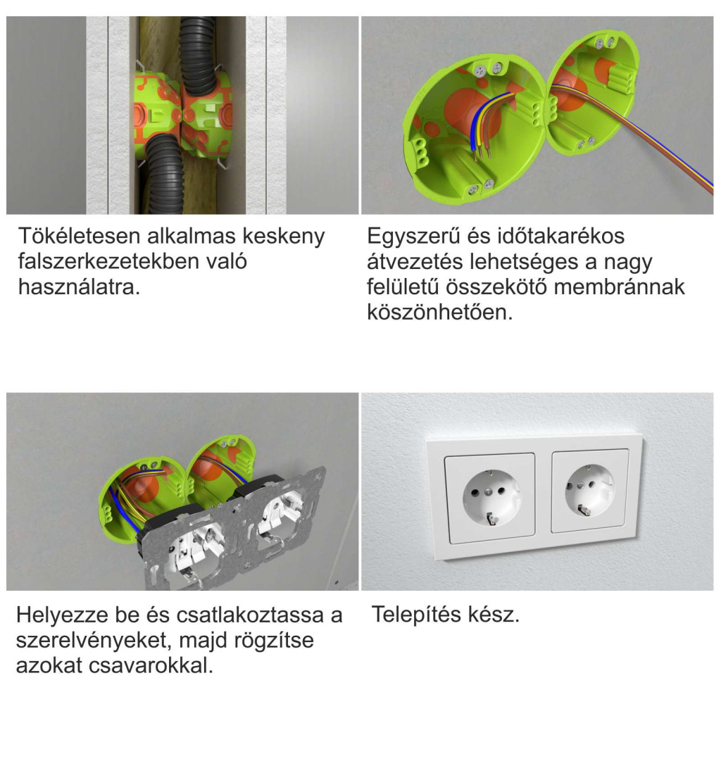 - Nagyobb befogási helyet kínál, mint a hagyományos szerelődobozok