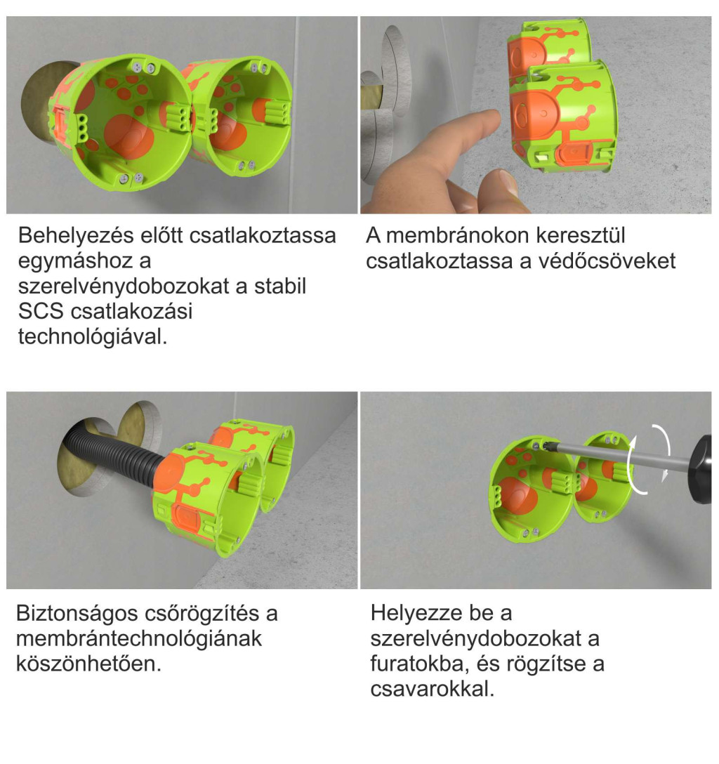 - SCS technológia: stabil kapcsolat, könnyű átfűzhetőség a membránnak köszönhetően