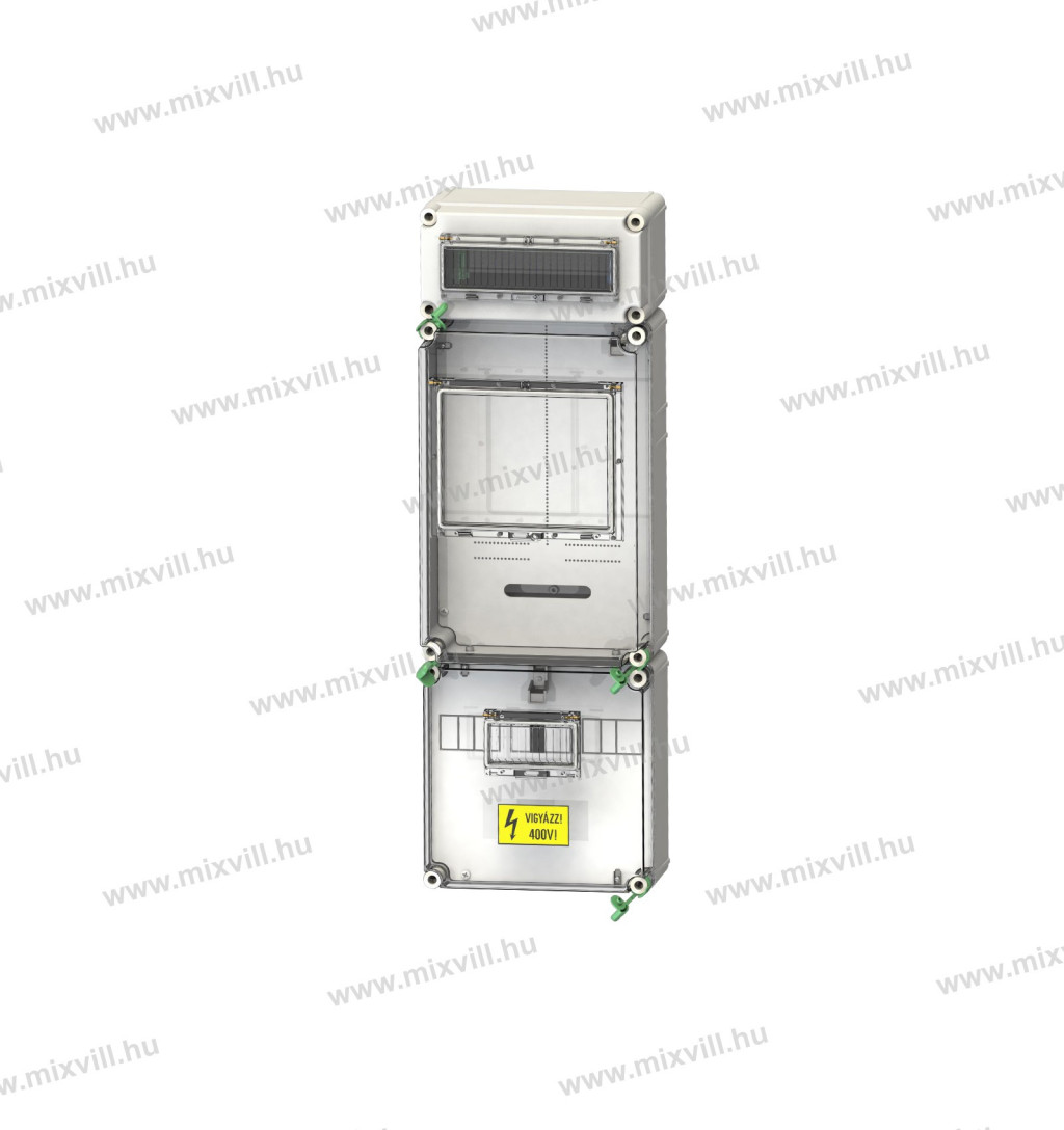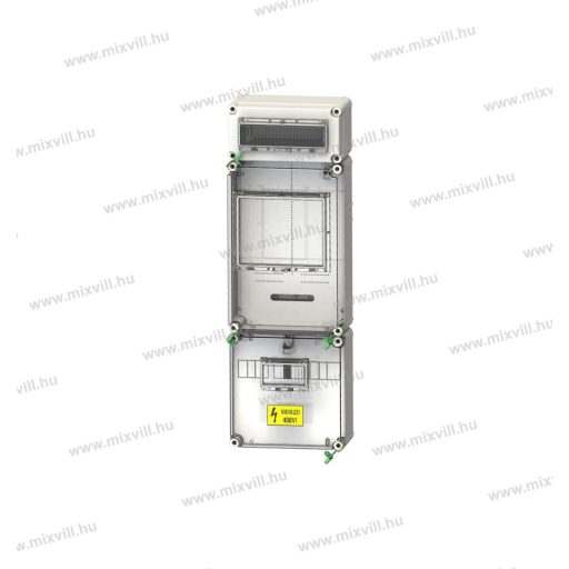 - felső elhelyezésű mért elosztóval (12 modulos ablak, 288 mm hosszú, TS 35, magasított kalapsín, PE és N sorkapocs),