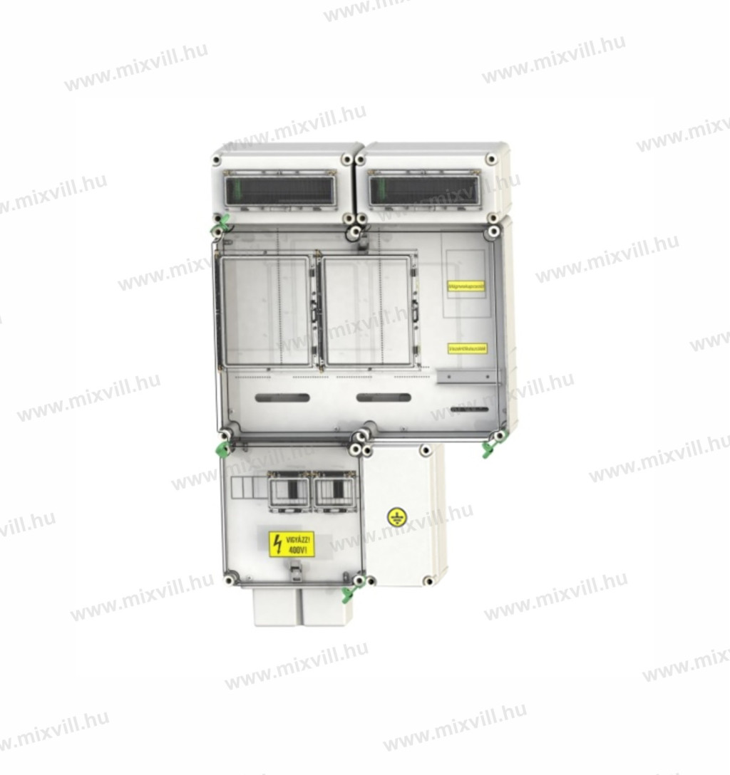 Egy felhasználási helyes M63.80A és V63.80A mérés földkábeles, felületre szerelt kivitelben, 2 db 1530 ÁK 1x12 fogyasztói elosztóval