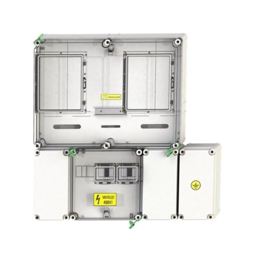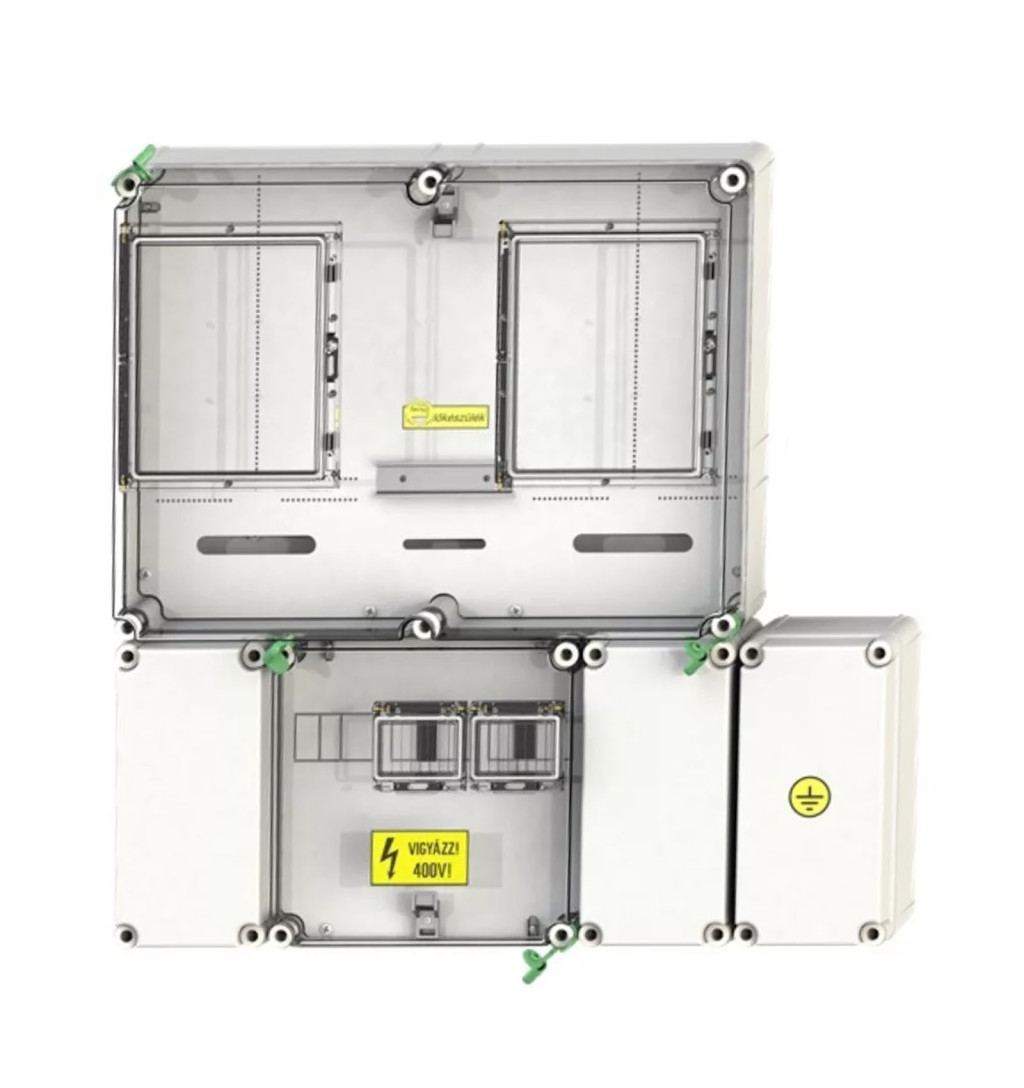A Csatári Plast PVT 6075 Á-V Fm-SZ KF egy megbízható, IP65 védettséggel rendelkező, időjárásálló fogyasztásmérő szekrény, amely egy felhasználási hely mérésére alkalmas. Kifejezetten mindennapszaki (80A-ig) és vezérelt (32A-ig) mérési igényekhez lett tervezve.