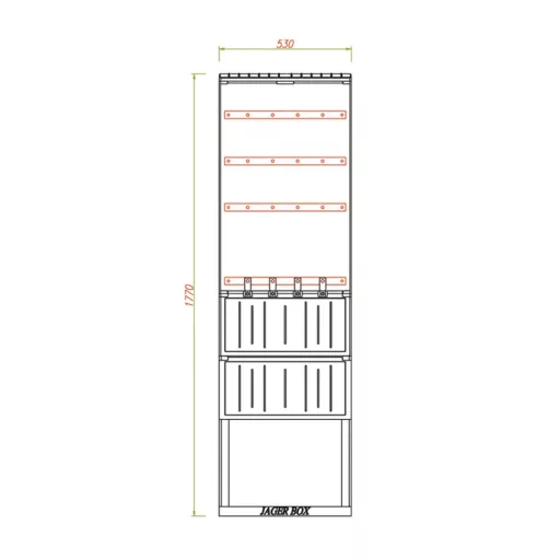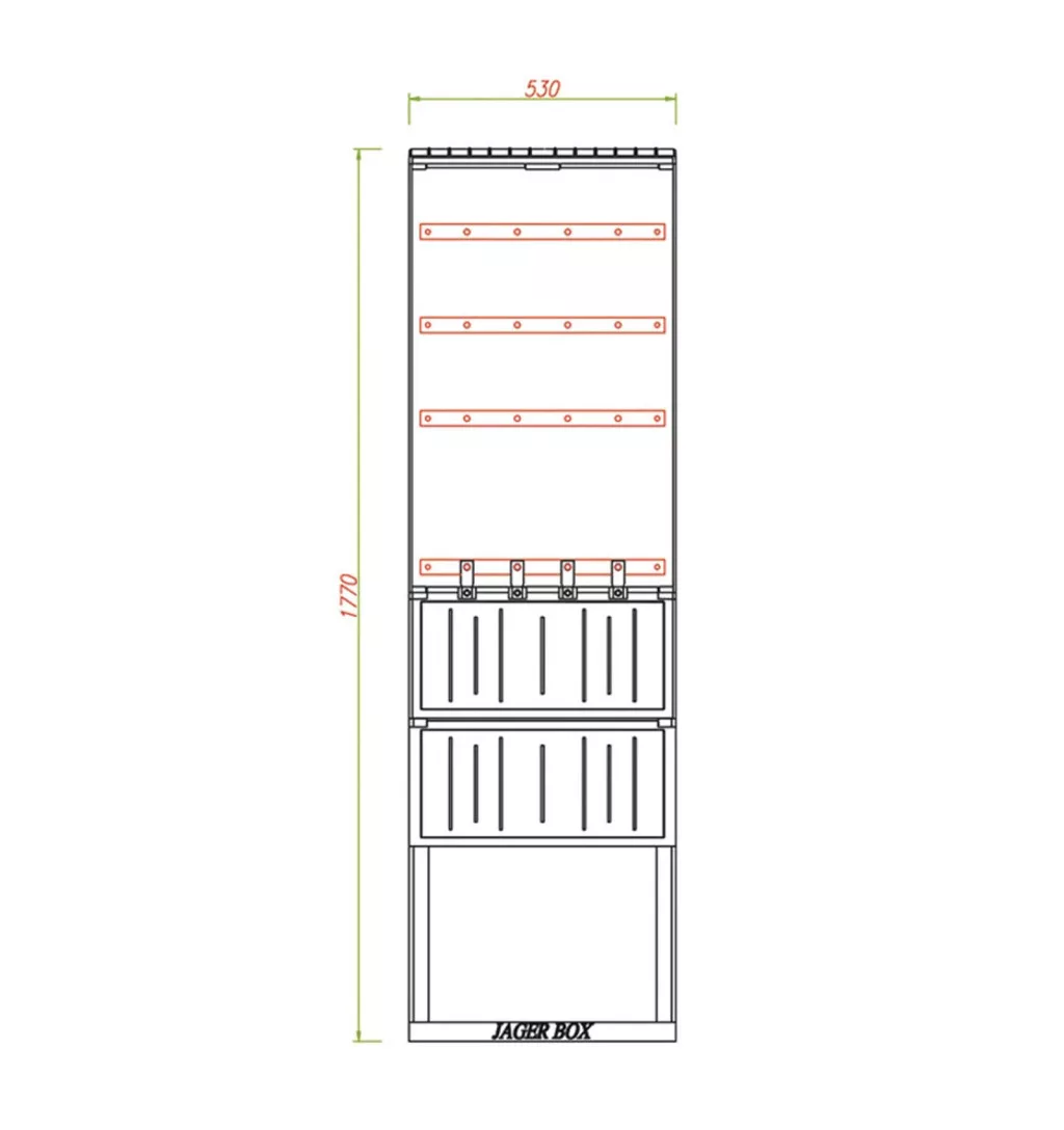- Méret: 530 × 1770 × 250 mm