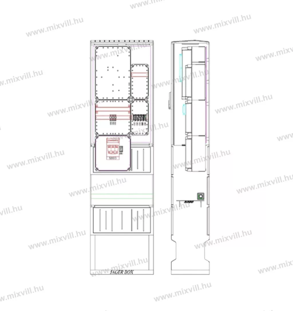 Egy felhasználói helyes M63.80 mérés földkábeles csatlakozás, szabadon álló kivitelben, fogyasztói főelosztóval, NH00 szakaszoló biztosítóval a méretlen oldalon