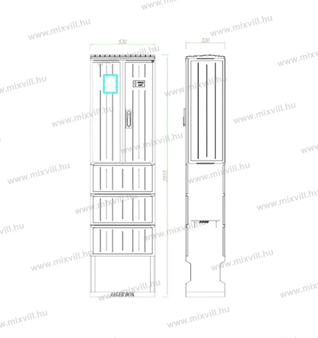 Földbe telepíthető, ásható fogyasztásmérő szekrény, 1 vagy 3 fázisú mérőhöz, NH00 aljzattal, földkábeles csatlakozás, 80A mindennapszaki