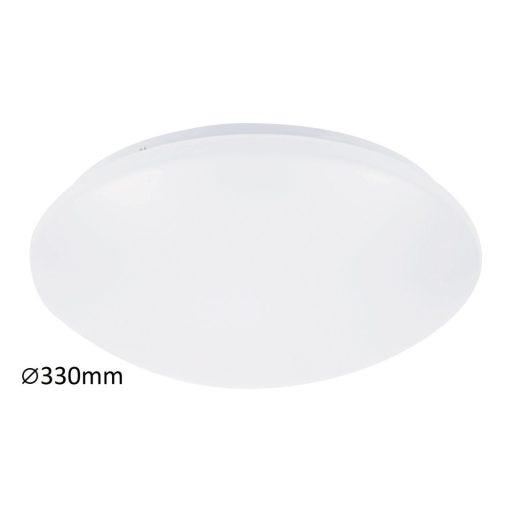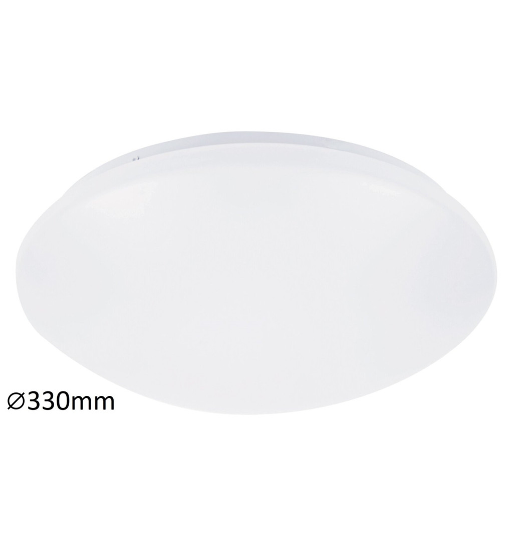 Klasszikus megjelenésű mennyezeti lámpa beépített energiatakarékos LED fényforrással. A 33 cm átmérőjű, fém ház és fehér színű műanyag lámpabúra egyszerű, de elegáns dizájnt biztosít. Az integrált LED fényforrás 18W teljesítménnyel, 1350 lumen fényerővel és 4000 Kelvines, természetes fehér fényével biztosít optimális világítást. 5 év garanciával rendelkezik, és a fényforrás nem cserélhető.