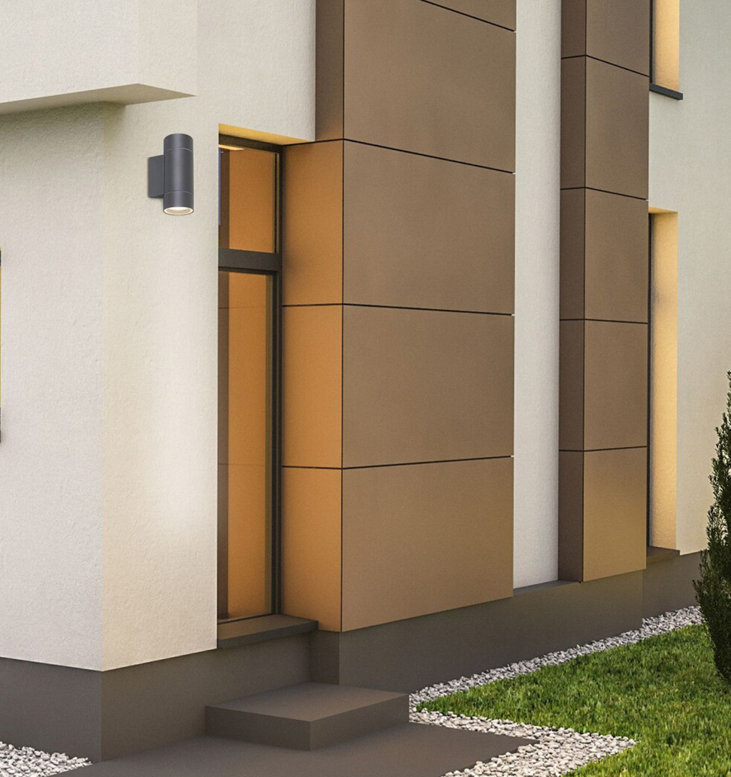 Az IP54 védelem garantálja, hogy a lámpa ellenáll a por és fröccsenő víz hatásainak, így hosszú távon is megbízható kültéri világítási megoldást nyújt. Kiválóan alkalmas házfalak, teraszok, bejáratok megvilágítására.