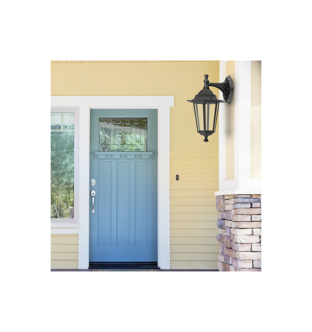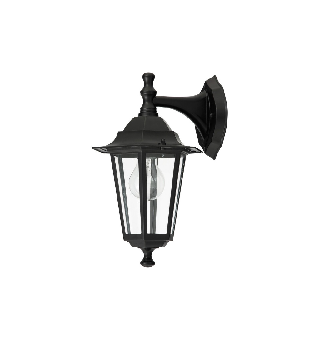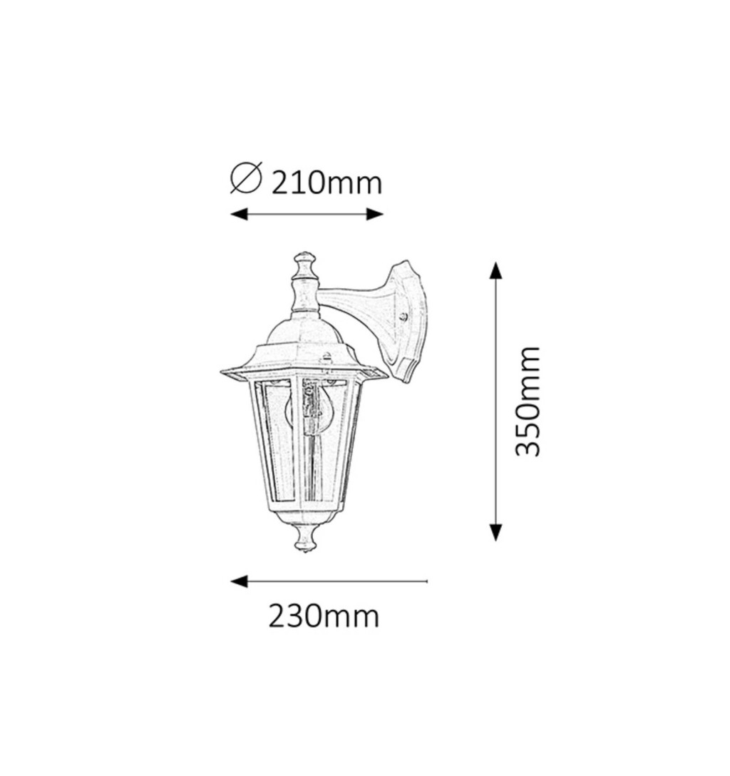 Ez a klasszikus stílusú kültéri falikar ideális választás a szabadtéri terek világításához, alsó állású kialakítással és 1 db foglalattal. A lámpatest magassága 35 cm, kinyúlása 23 cm, fekete színű, időtálló fémből készült, míg a lámpabúrák víztiszta üvegbetétekkel díszítettek. Az IP43-as védelem garantálja a lámpa fröccsenő víz elleni védelmét. Az E27-es foglalatba akár 60W teljesítményű energiatakarékos izzók is elhelyezhetők.