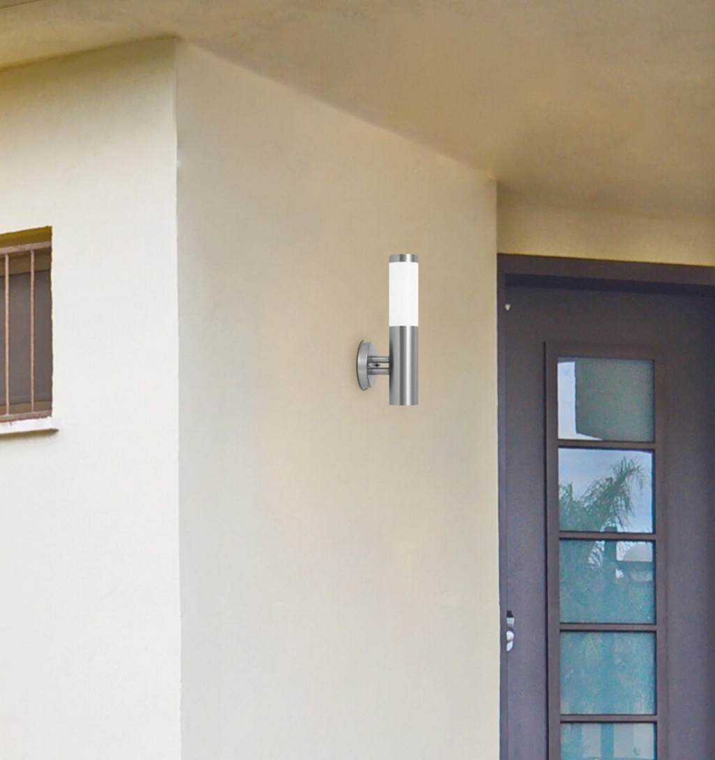 A Rábalux 8262 Inox Torch kültéri fali lámpa elegáns, mégis letisztult formavilágával jól illeszkedik a modern építészeti stílushoz. Rozsdamentes acél testtel és UV-álló fehér műanyag búrával készült, így hosszú távon is megbízható megoldást nyújt kültéri világításra.