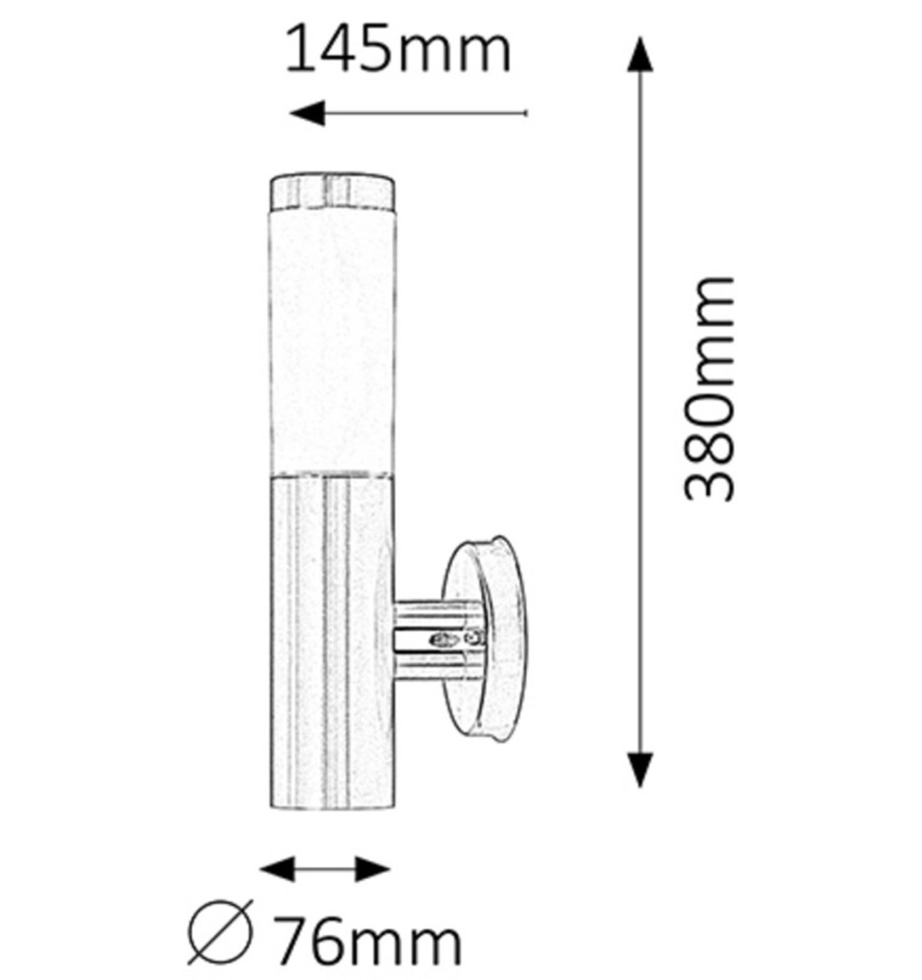 - Méretek: magasság 380 mm, kinyúlás 145 mm, átmérő 76 mm