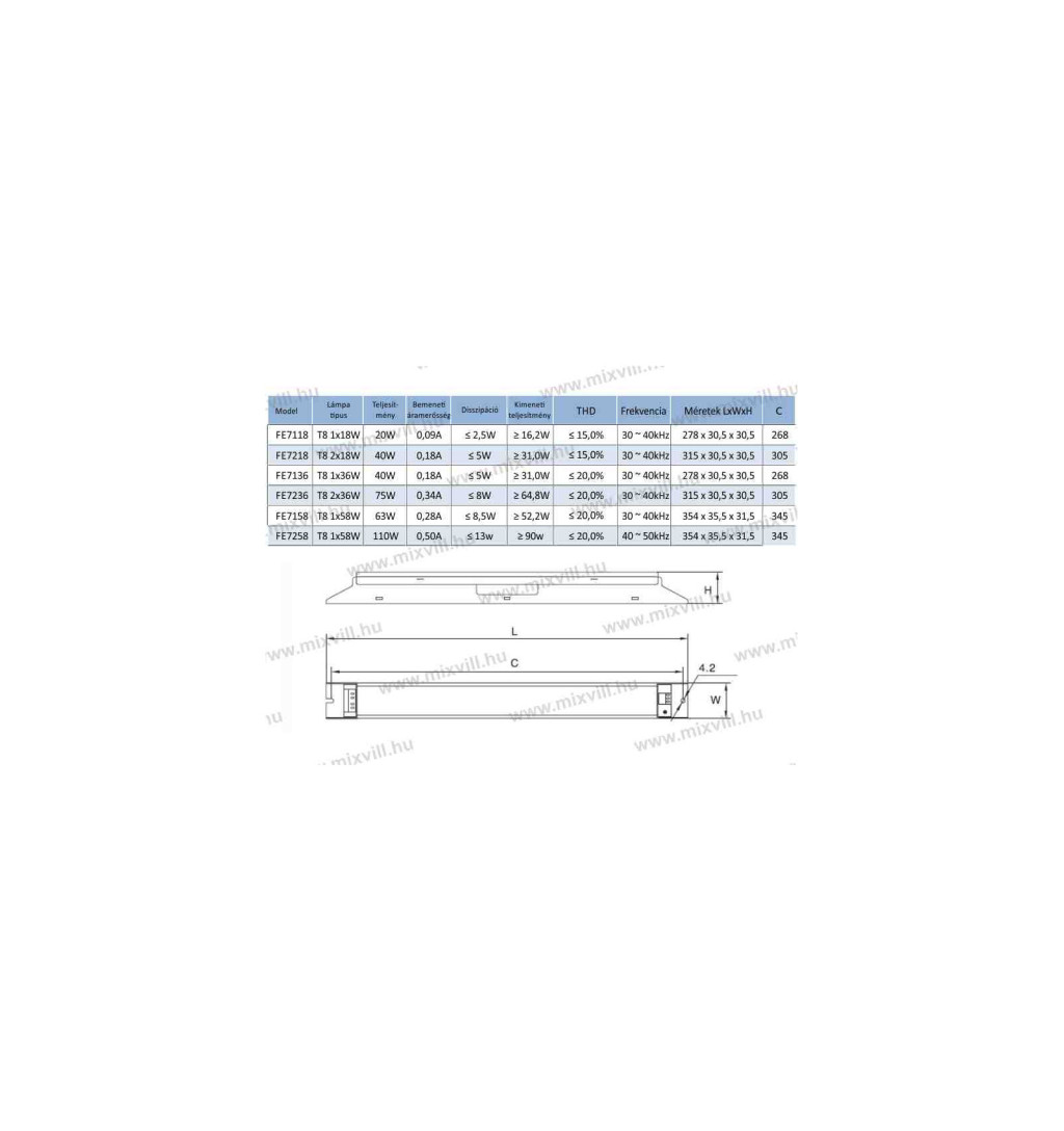 REX FEB TÜV 136 T8 elektronikus fénycsőelőtét 1x36W lámpatesthez 30.000h EEI=A2 FE7136J