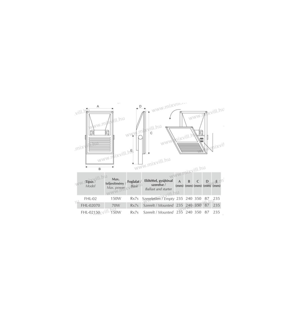 REX FHL-02 Rx7S ipari reflektor IP65, Max:150W, szereletlen REX FHL-02 Rx7S ipari reflektor IP65, Max:150W, szereletlen