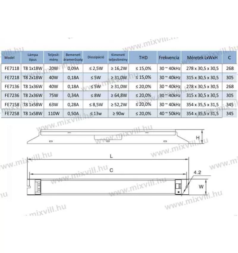 • Teljesítmény:1x58W