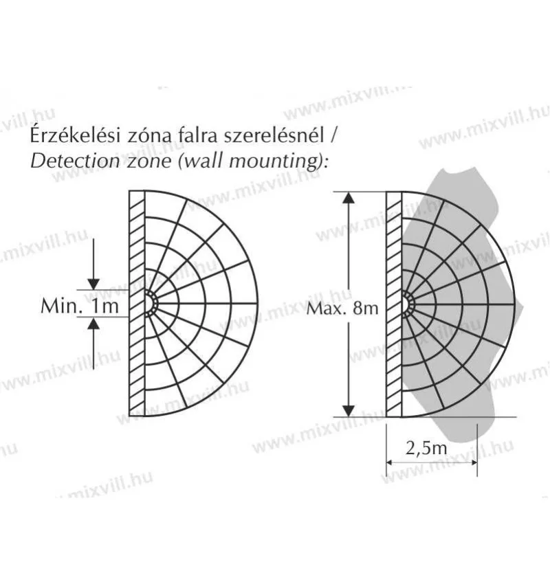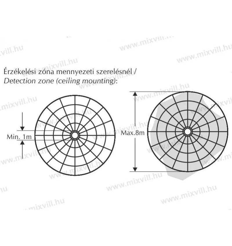 • Érzékelési zóna átmérője: 1-8 m (beállítható)
