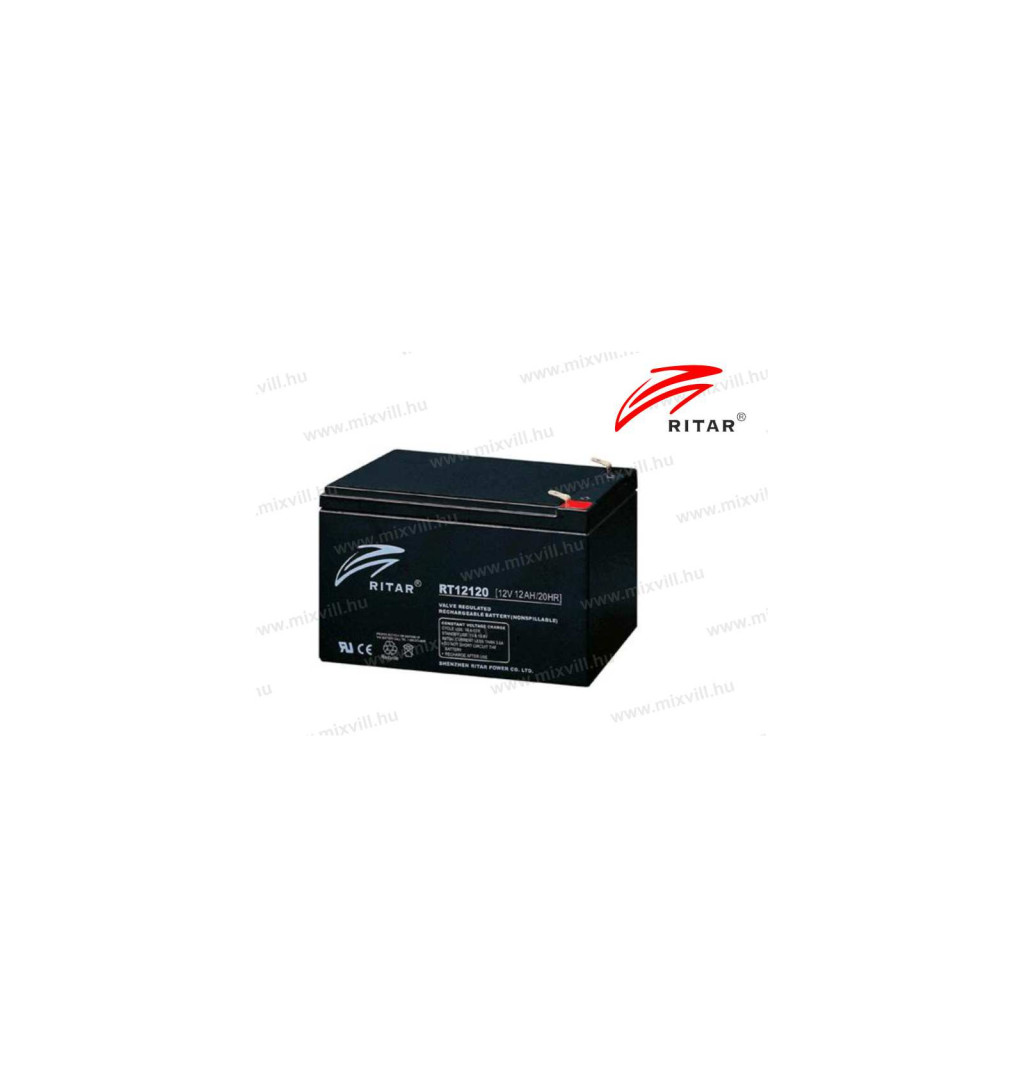 RITAR 12Ah akkumulátor 12V tűzjelzőbe RT12120-F2 zárt ólomakkumulátor