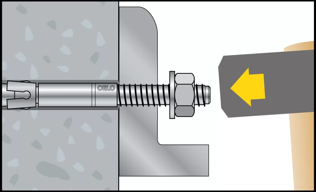 A BA A4-es csavar előnye, hogy a kis él- és középtávolságok miatt nehéz beépítési helyzetekben is használható. A beépítéshez fúrjon és tisztítson meg egy furatot, kalapálja be a BA A4-et, majd húzza meg. A rögzítőelemben lévő nyomatékot, a síkok közötti szélességet és a szabadfurat átmérőjét lásd a műszaki adatlapokon.