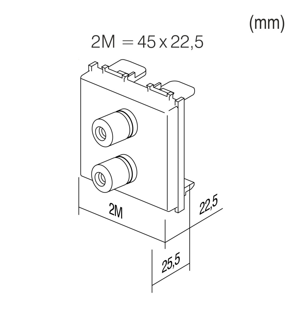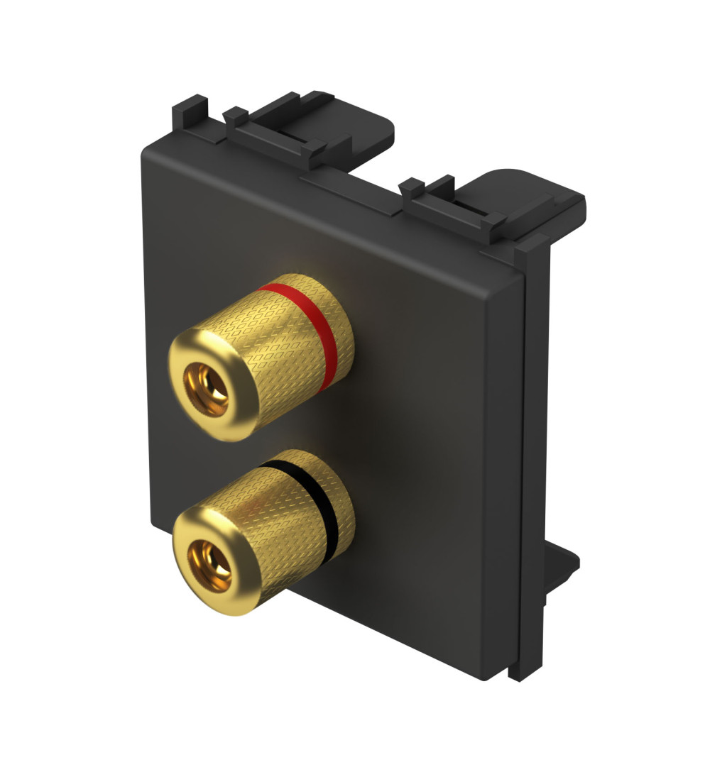 A MODUL KM26SB hangszóró aljzat praktikus és megbízható megoldás hangszórók csatlakoztatására falba szerelhető modulrendszerekben. Az aljzat kompatibilis Ø4 mm banándugóval és villás hangszóró csatlakozóval, így ideális otthoni audio rendszerekhez, Hi-Fi rendszerekhez vagy telepített hangtechnikához.