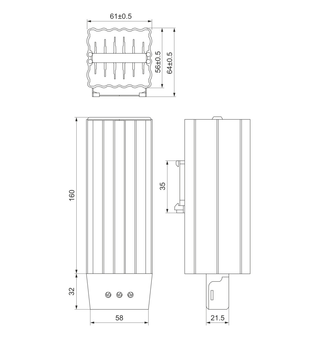 • Fűtőtest mérete: 220mm X 61mm x 64mm (csatlakozótest nélkül)