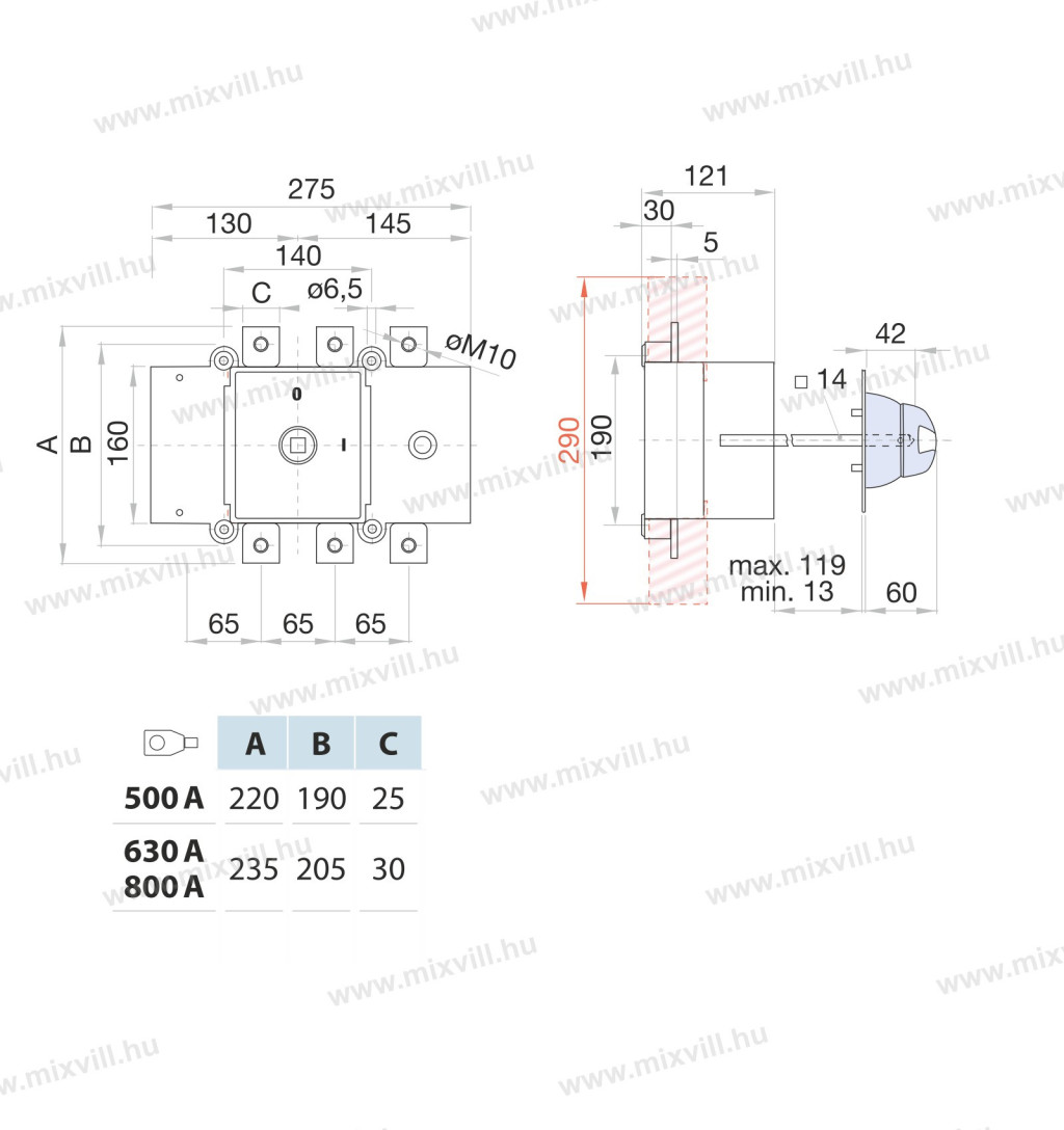 2 méret: 500A, 630A, 800A kézi és UM motoros hajtással