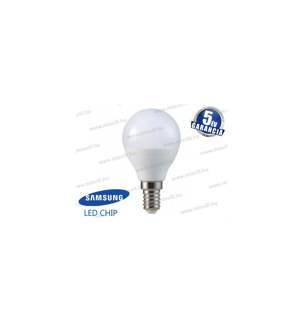 V-TAC SKU-264 LED izzó E14 gömb 5,5W 3000K 470lm 180° vil.szög Samsung Chip 5 Év Garancia A+
