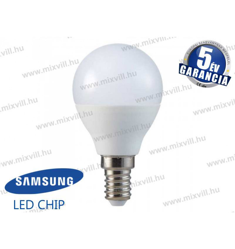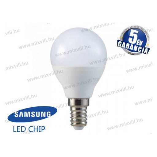 V-TAC SKU-265 LED lámpa E14 gömb 4,5W 6400K 470lm 180° vil.szög Samsung Chip 5 Év Garancia A+