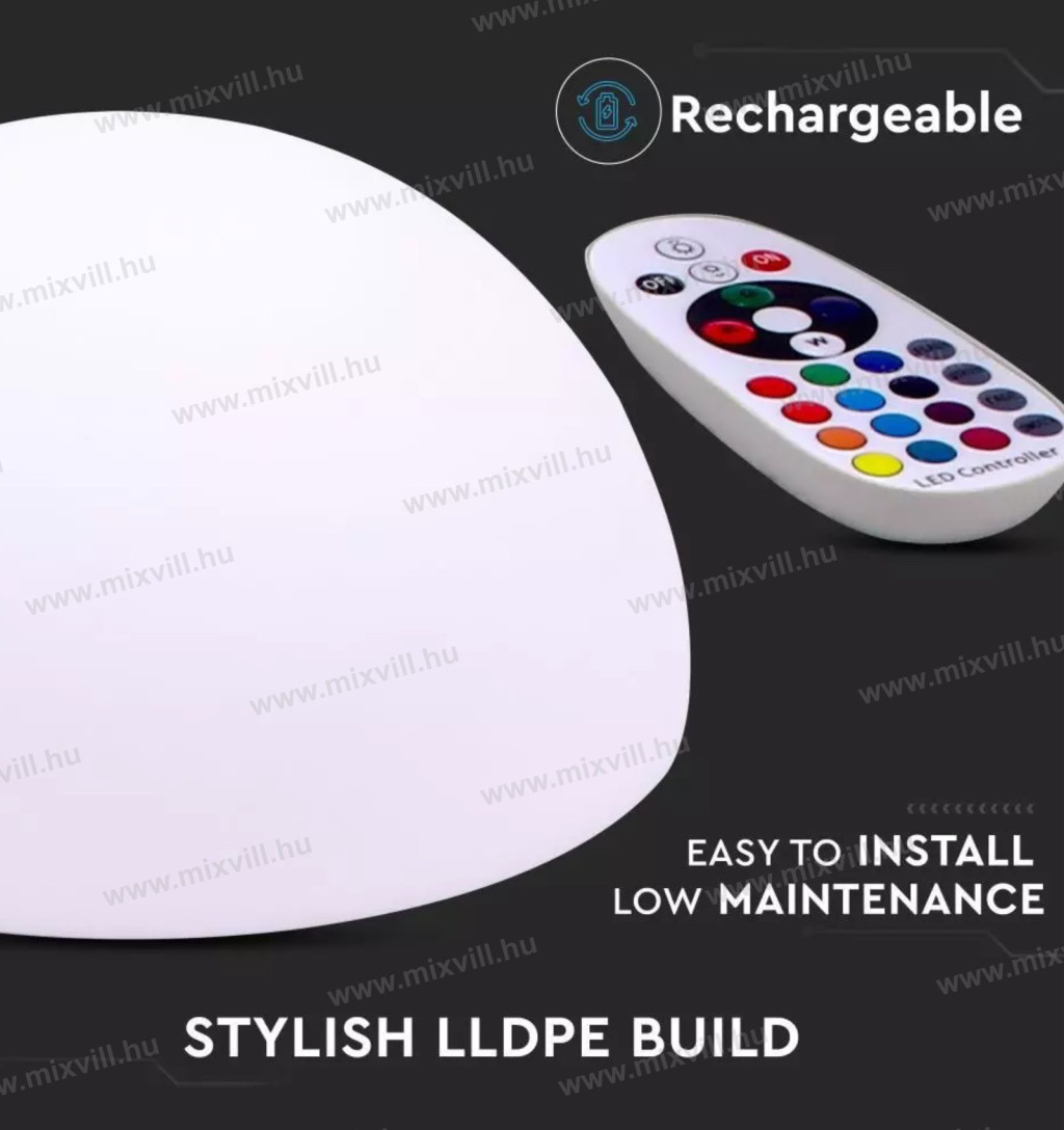 V-TAC SKU-40221 Led lámpa újratölthető 108lm 6W IP67 RGB 20cm