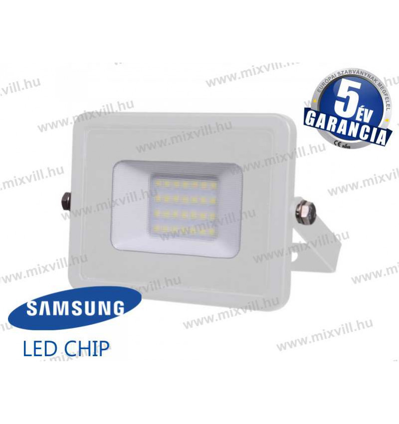 V-TAC SKU-442 LED reflektor 20W 3000K 100° vil.szög 1600lm fehér IP65 Samsung 5év garancia