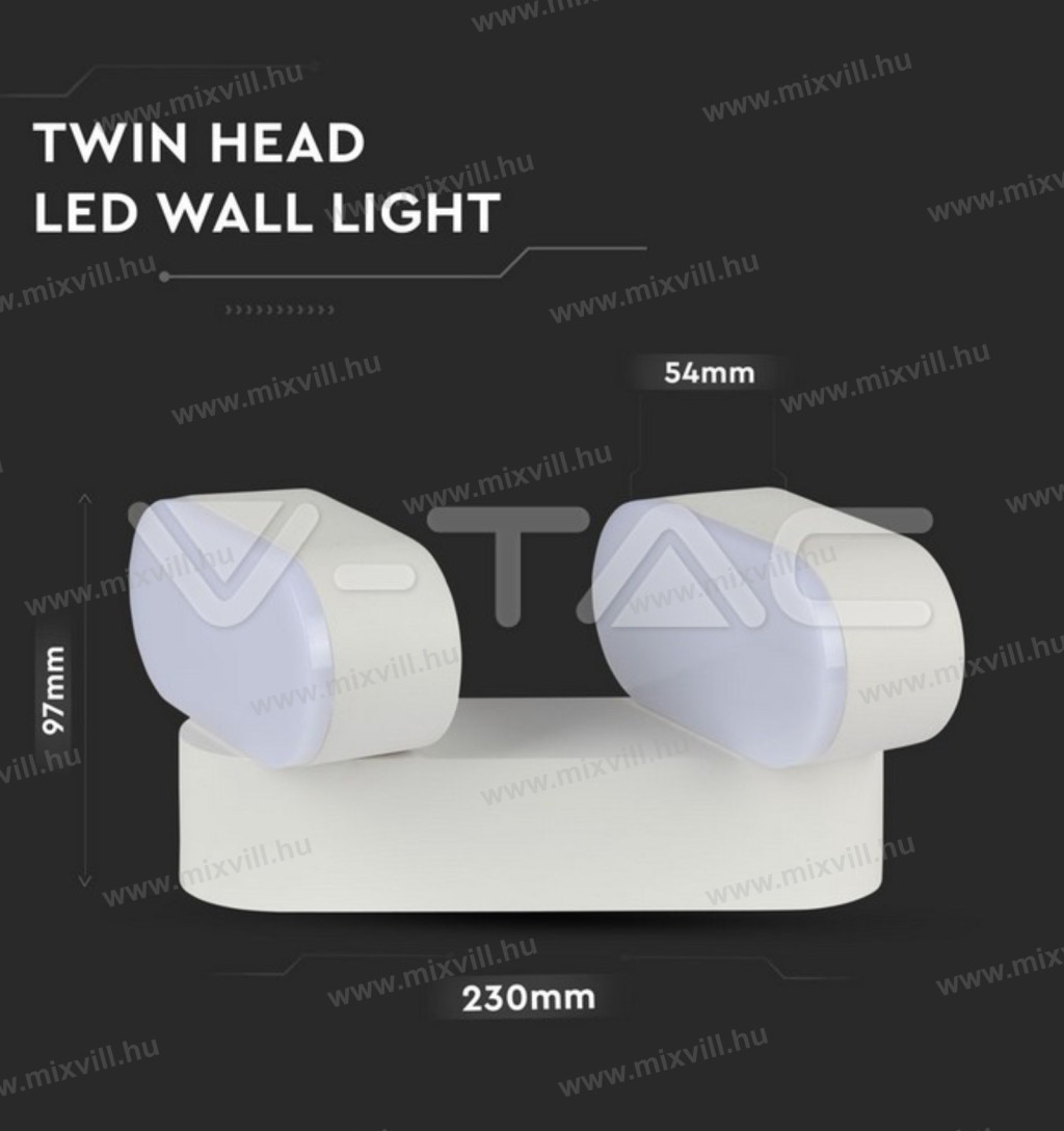 V-TAC SKU-8292 Fali lámpa forgatható 2x6W 1100lm 3000k fehér IP65