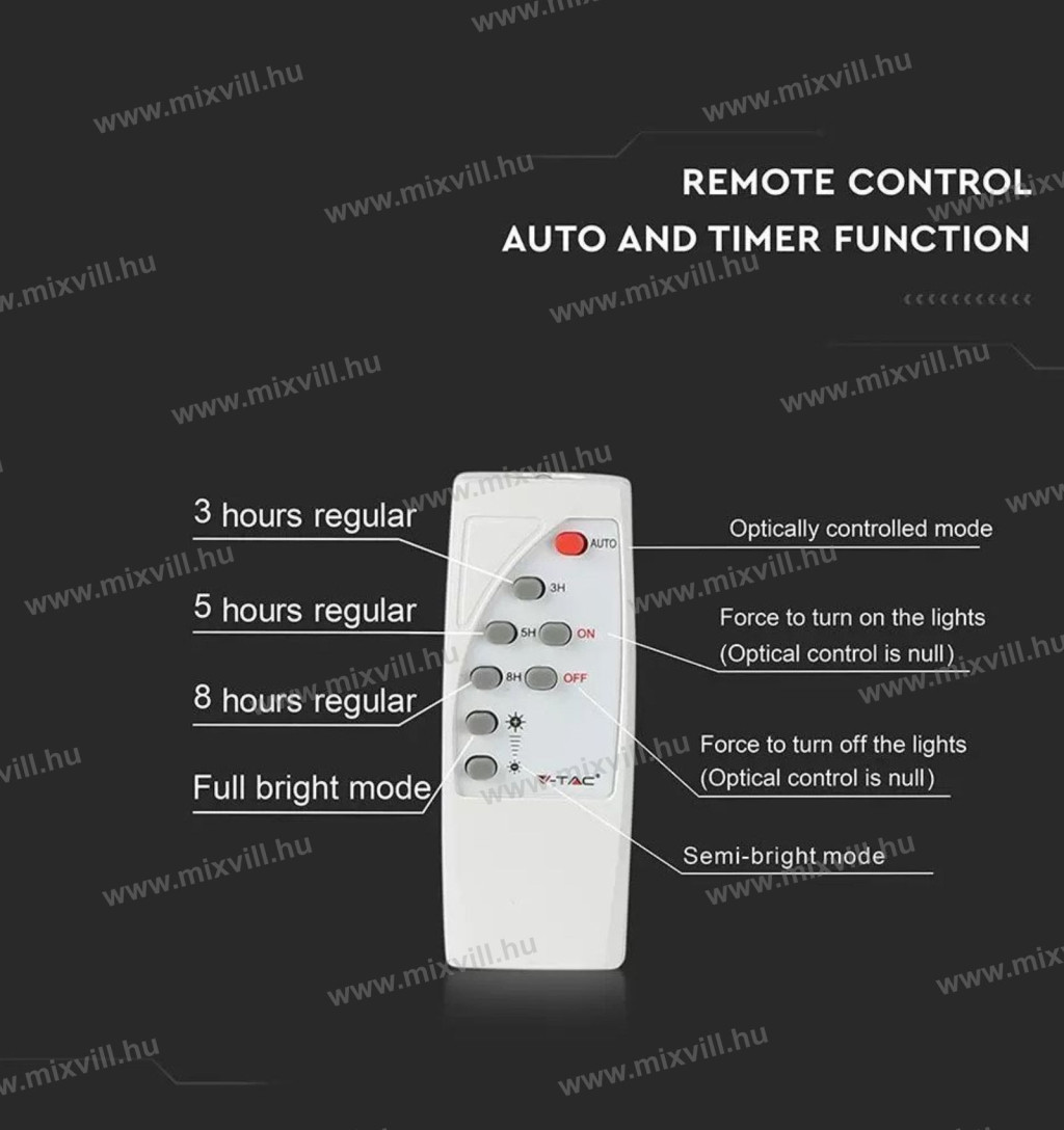 - Indulási idő 100% ON: 0.001 mp (azonnal felkapcsol)