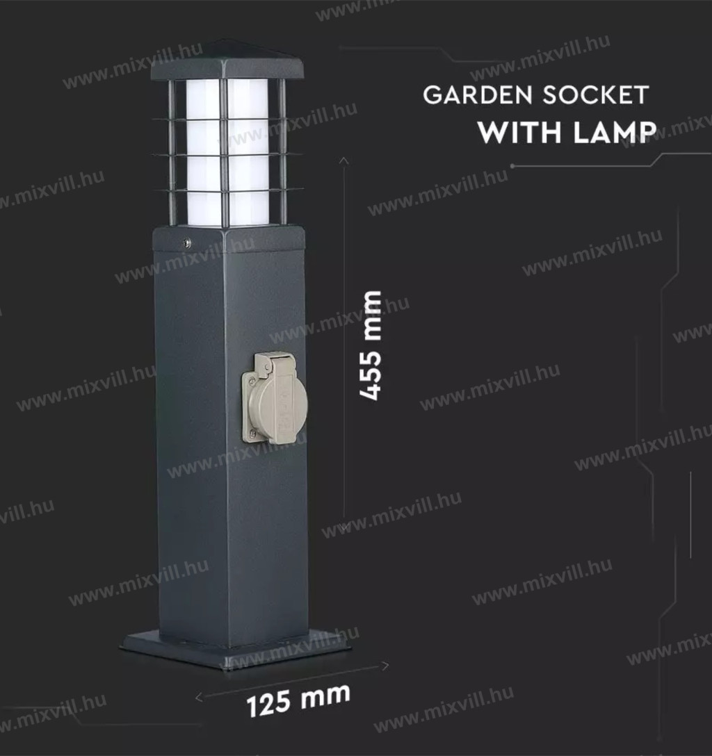 V-TAC SKU-8822 kültéri kerti lámpatest álló szögletes IP44 E27 2x2+F dugaljal