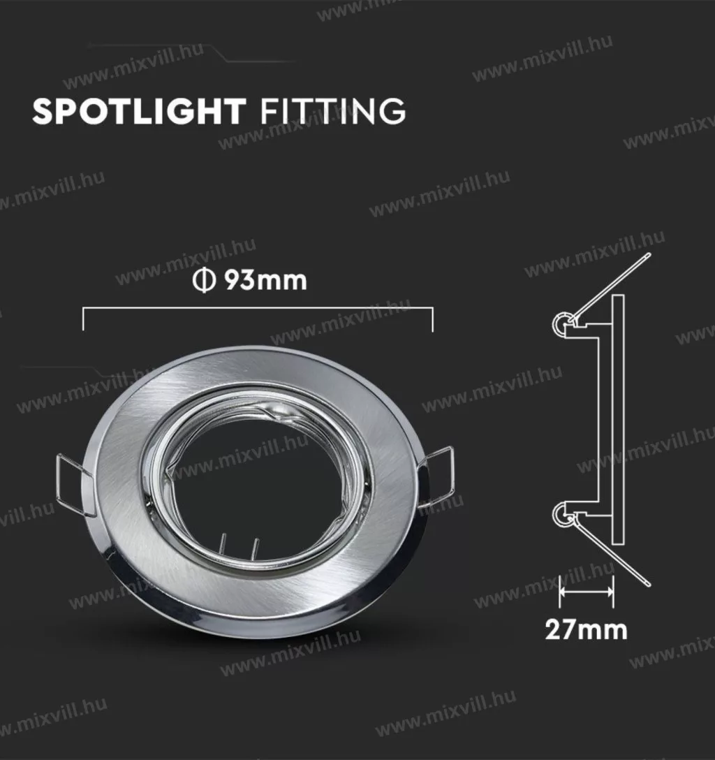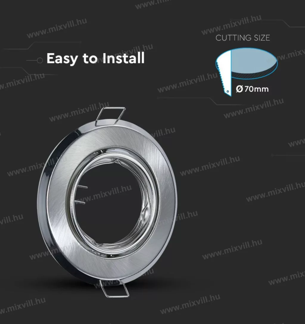 V-TAC SKU-8939 SPOT beépíthető lámpa síkban billenthető szatén króm 74mm kivágás
