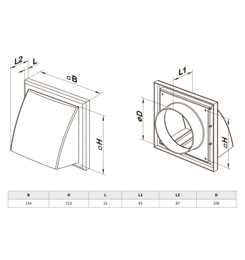 A MV 102 VK ABS ereszelem ideális választás szellőzőrendszerek, páraelszívók, légbevezetők és szellőző ventilátorok csatlakoztatásához. A beépített visszacsapószelep megakadályozza a huzatot és a rovarok, por vagy szennyeződések visszaáramlását a rendszerbe.