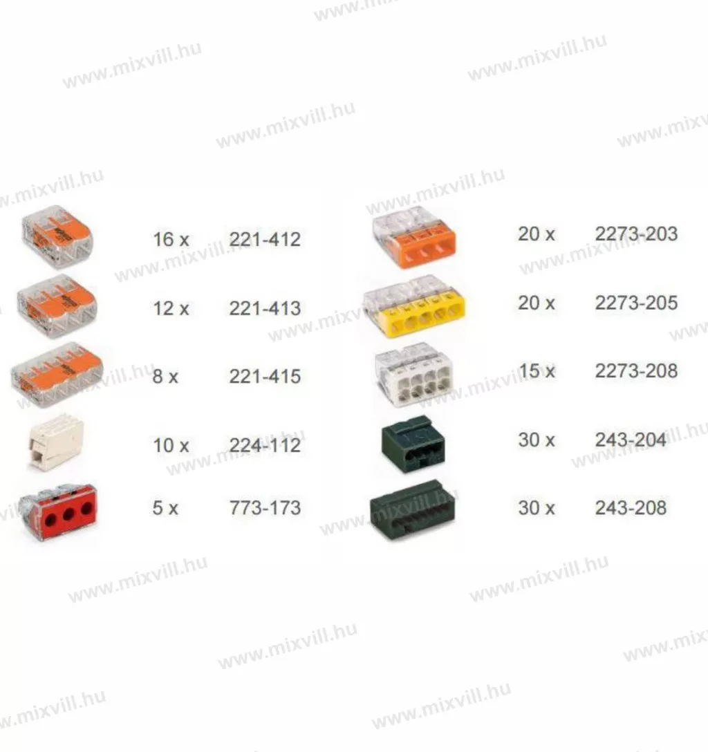 Ez a doboz 166 darabot tartalmaz a legnépszerűbb Wago választékból.