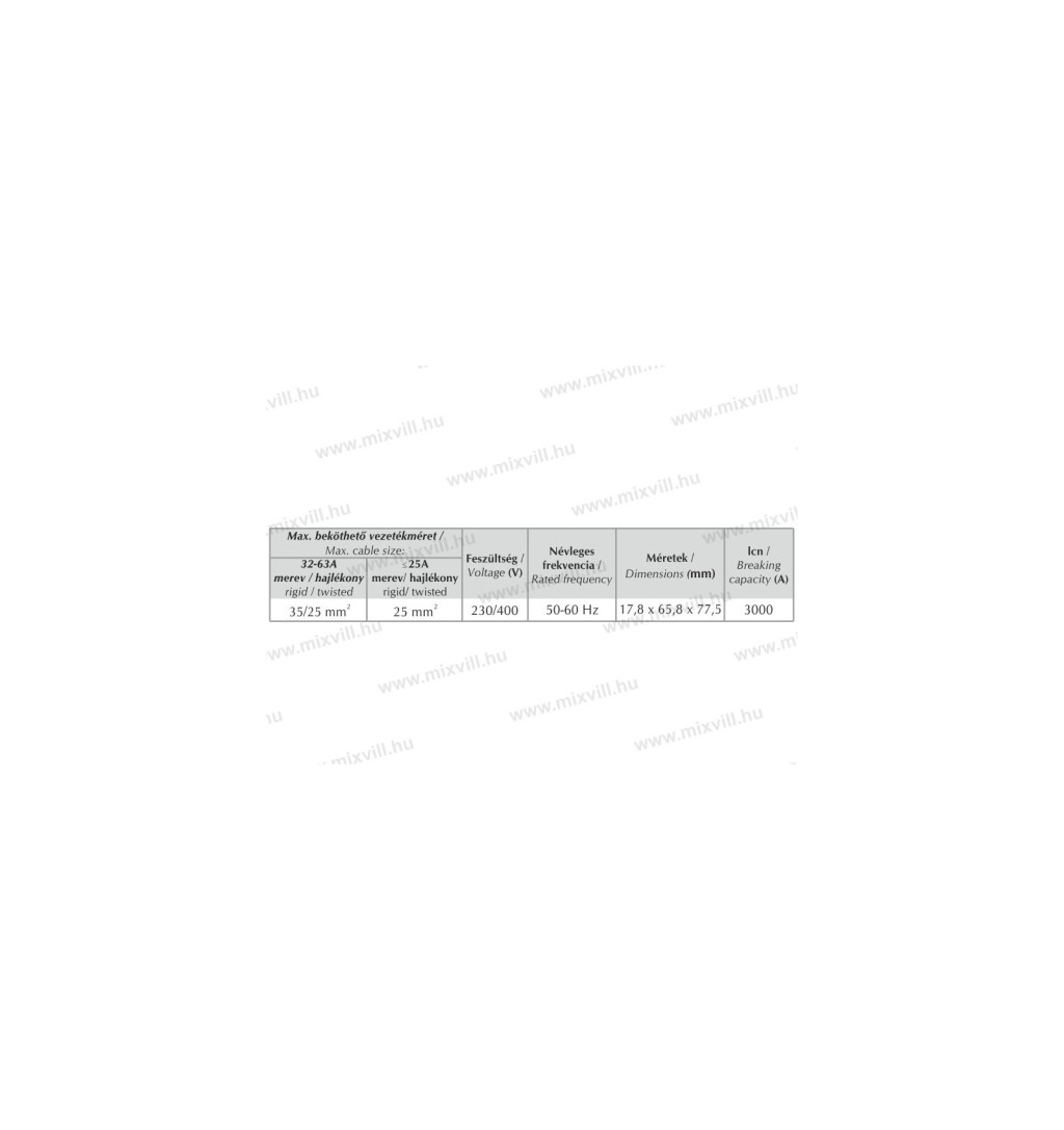 • Névleges áramerősség a pólusszám függvényében: 1, 2, 4, 6, 10, 16, 20, 25, 32 A mind "C" karakterisztikában,
