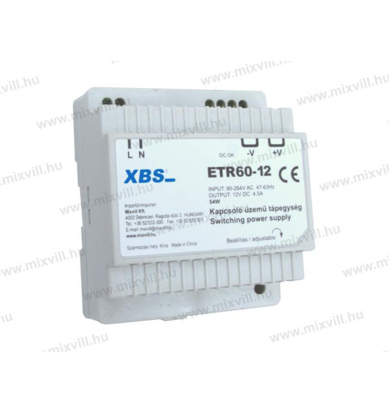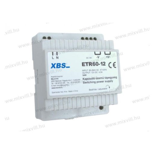 XBS ETR-60/12 Elektronikus transzformátor 54W 12V DC 4,5A.