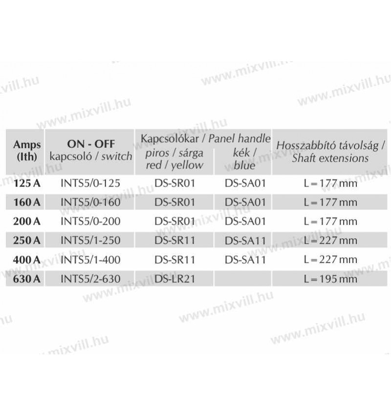 XBS INT DS-SR01 piros-sárga kapcsolófej IP65 40-200A-ig +177mm hosszabbítókar