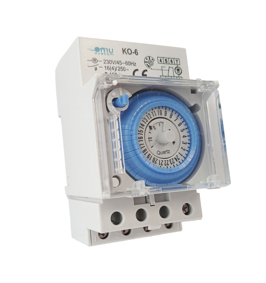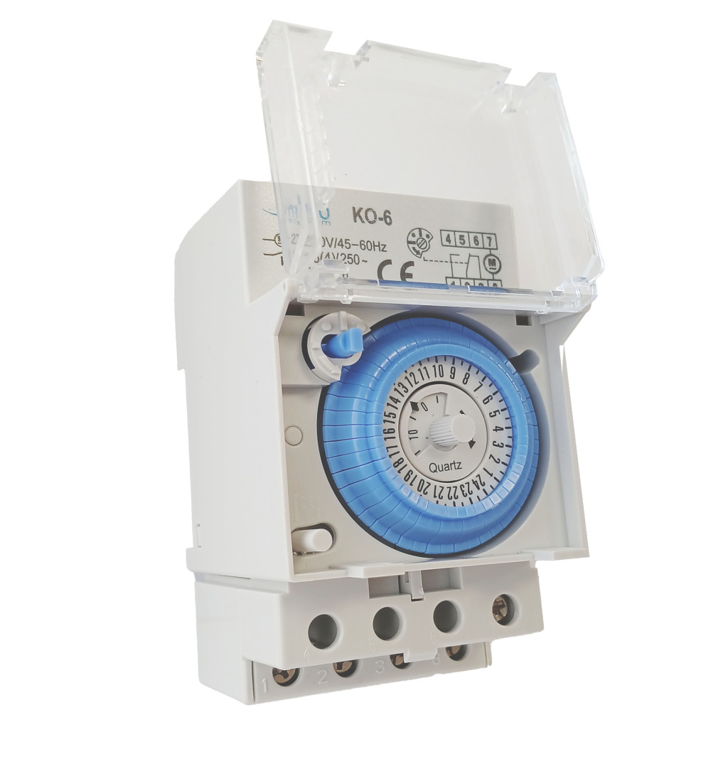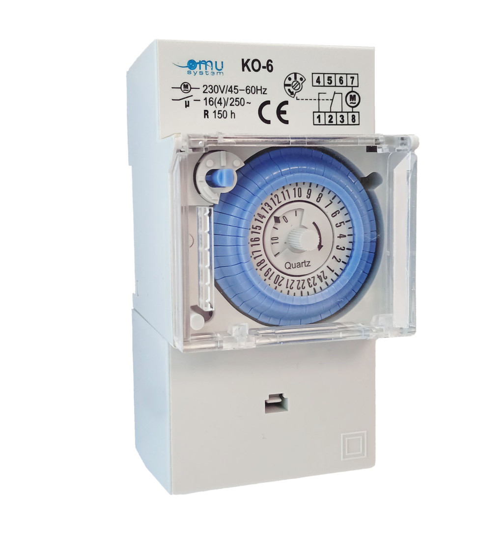 A KO-6 kapcsolóóra ideális választás egyszerű, megbízható napi időzítéshez ipari és lakossági elosztószekrényekben egyaránt.