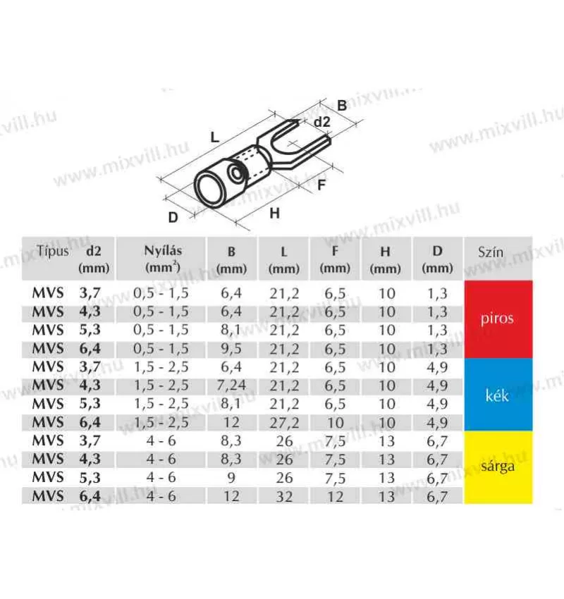 XBS MVS 5,3mm nyílás 0,5-1,5mm2 szigetelt villás saru
