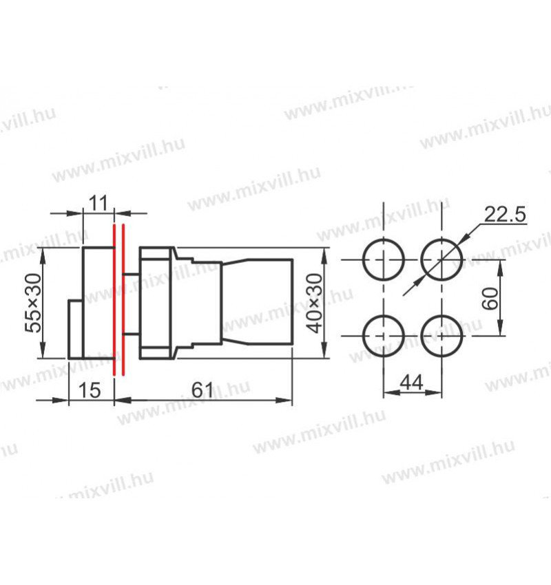 A készülékek ø=22 mm-méretű furatba. Az alapszerelvényre rögzíthető érintkezőelemek száma szükség esetén max. 4 darabra bővít hető. Olyan régebben készült elosztótáblák vezérlőkészülékeinek cseréje esetén, amelyek ø=38 mm-es furatba voltak szerelve, úgy redukáló gyűrűk segítségével (R22/30, R22/40) lehet a készüléket a szerelőlaphoz rögzíteni.